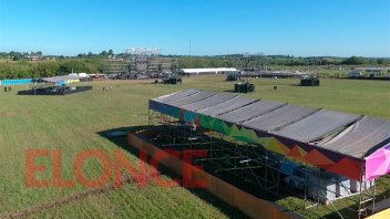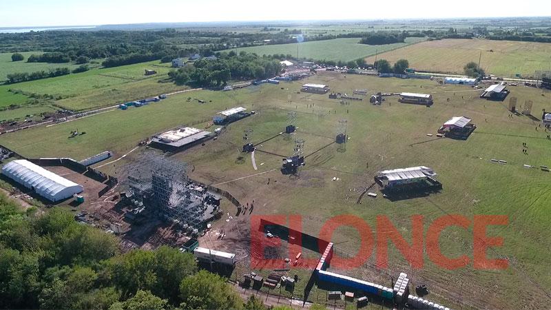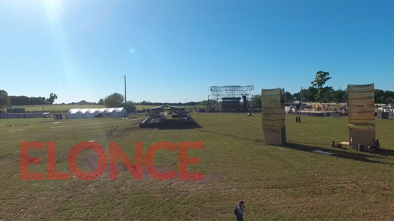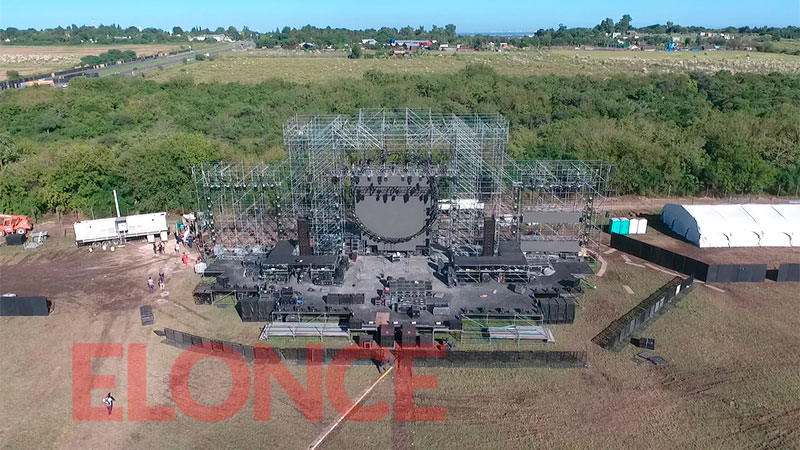 A menos de 24 horas del megaevento, trabajadores avanzan en el armado del escenario principal y de las barras que habrá en el predio. El drone de Elonce registró como está el lugar que albergará a unos 52.000 asistentes.