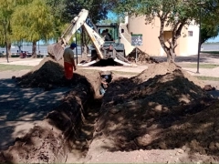 Personal municipal construyó dos nuevas bocas de registro y realizó las conexiones de servicio a las futuras oficinas del Municipio y al complejo sanitario de ese sector, situado en la zona de los miradores. Previamente, se había colocado el último tramo de cañerías colectoras.