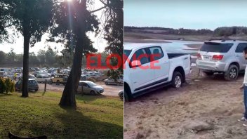 Varias decenas de autos se pudieron ver este domingo, en la zona del embarcadero del conocido paraje pesquero del departamento Diamante. Algunos vehículos ingresaron a la arena y quedaron varados. Fotos y video de La Jaula.