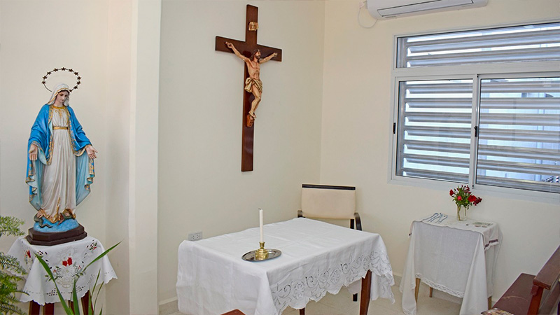 Este lugar se habilita de manera temporal hasta la realización de un espacio definitivo que contará también con lugar de residencia para el capellán destinado a la atención espiritual de la comunidad hospitalaria.