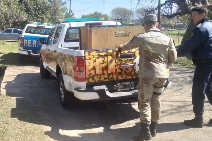 “El dueño de la vivienda lo encontró en su patio este lunes por la mañana. Como nosotros estábamos en otro procedimiento, nos dijo que lo pondría a resguardo mientras esperaba nuestra llegada. Como es un animal salvaje, se le recomendó que mantenga distancia, ya que representaba un riesgo para su vida”, informaron desde Delitos Rurales a Elonce.