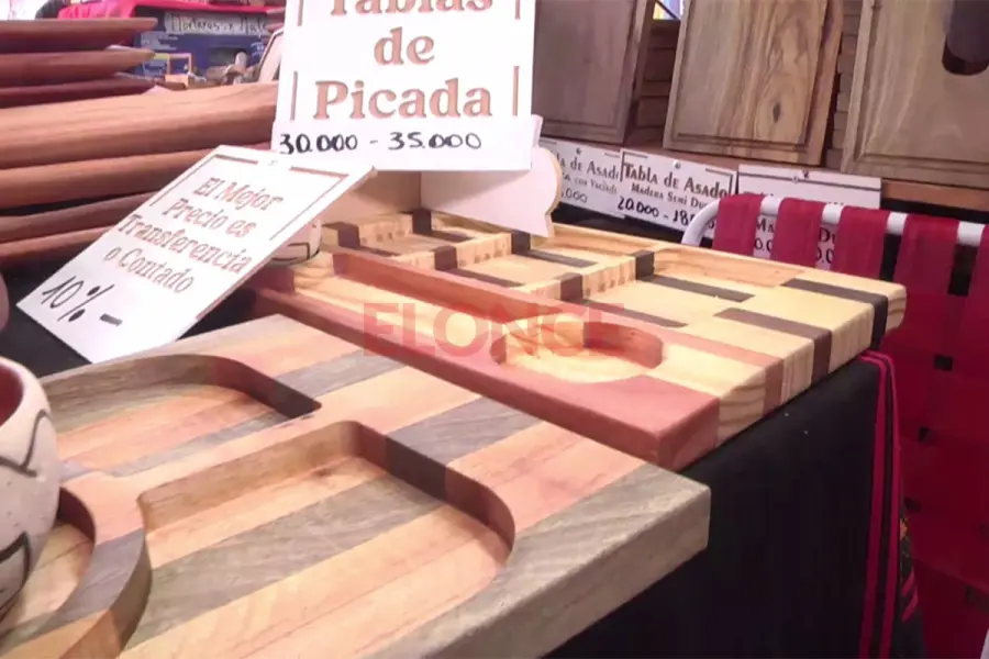 Uno de los stands más destacados de la feria es el de Natalia, una artesana proveniente de San Lorenzo, Santa Fe, que ofrece una gran variedad de productos de madera. Entre sus creaciones se encuentran tablas de picada, espátulas, cucharones y hasta juguetes de madera. Un producto particularmente llamativo es la batea de madera, ideal para servir asado o empanadas, que además tiene la particularidad de conservar la temperatura de los alimentos por más tiempo que los platos tradicionales.