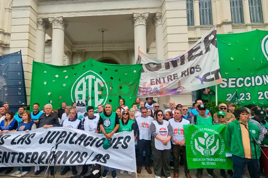 La concentración se inició en Plaza 1º de Mayo, donde los manifestantes desplegaron pancartas con consignas en defensa de las jubilaciones entrerrianas y en contra de posibles modificaciones a la Ley 8732. La convocatoria reunió a sindicatos de distintos sectores, entre ellos docentes, estatales, judiciales y bancarios.