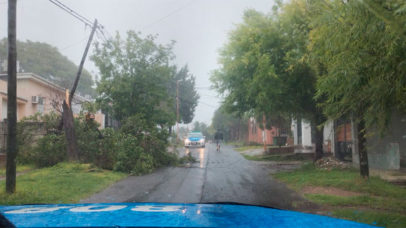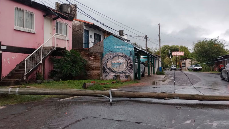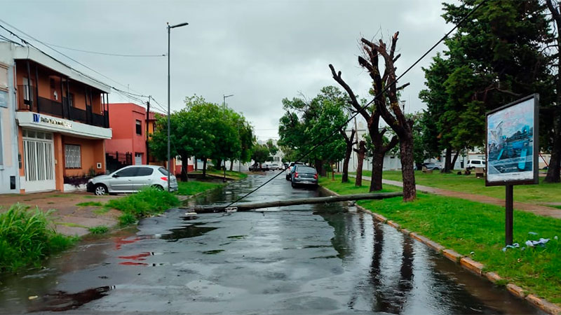 El fuerte viento causó serios destrozos en diversas zonas de la ciudad. El personal policial dio cuenta que en barrio Puerto Sánchez, sobre el ingreso de calle El Pescador un poste de gran tamaño se cayó