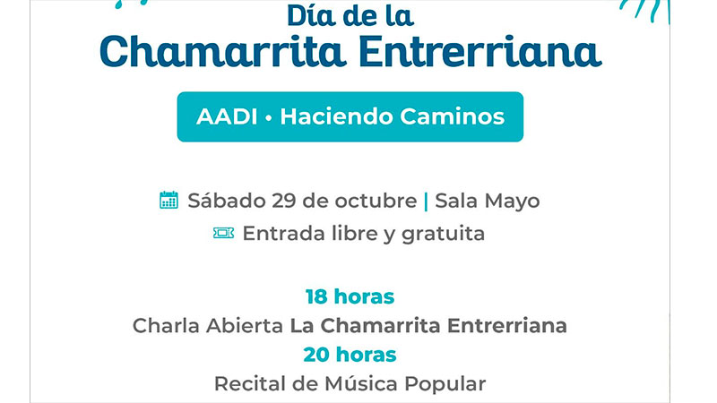 A las 18 horas, en la Sala Alfonsín, se llevará a cabo la charla abierta “La chamarrita entrerriana”. Tendrá como moderador a Manuel Lazo y participarán Rubén Cuestas (Los Hermanos Cuestas), Víctor Acosta (autor del libro “La chamarrita entrerriana”), Hernán Rondan Grasso (presidente de la Comisión Permanente de Homenaje a Linares Cardozo) y Alejandro Acosta (Las Voces de Montiel).