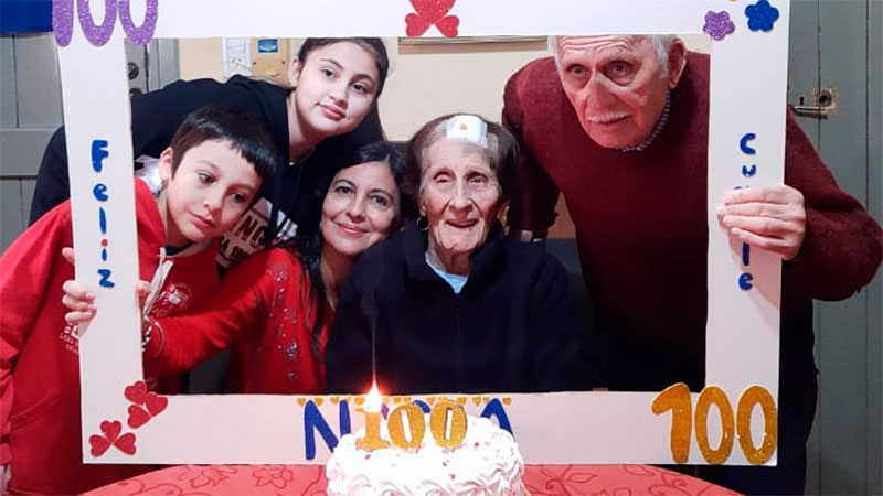 Isolina Virgilio de Acosta es de Paraná y cumplió 100 años el 10 de julio. La pandemia no le impidió celebrar este cumpleaños tan especial, pero debió hacerlo con su círculo más íntimo, los que siempre están con ella, su familia: su único hijo, de 80 años (la próxima semana cumple sus 81); su nuera; su nieta y su pareja; sus dos bisnietos.