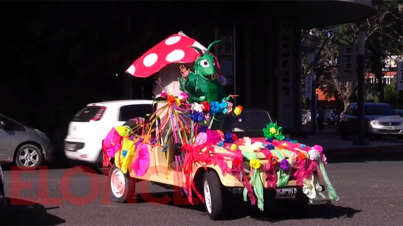 Este sábado, niños del Jardín Sancho Panza, dependiente de la Escuela N°156 "Miguel de Cervantes Saavedra" mostraron su alegría por la llegada de la primavera con una tradicional desfile de carrozas.