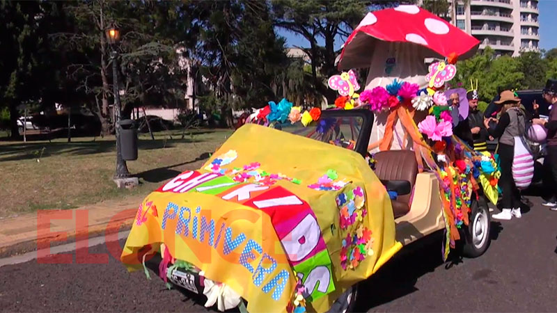 Motivados por la alegría y color de la primavera, padres del jardín Sancho Panza realizaron un hermoso desfile de carrozas por la zona del Rosedal en el Parque Urquiza. “A los niños les encanta”, dijo una docente a Elonce.