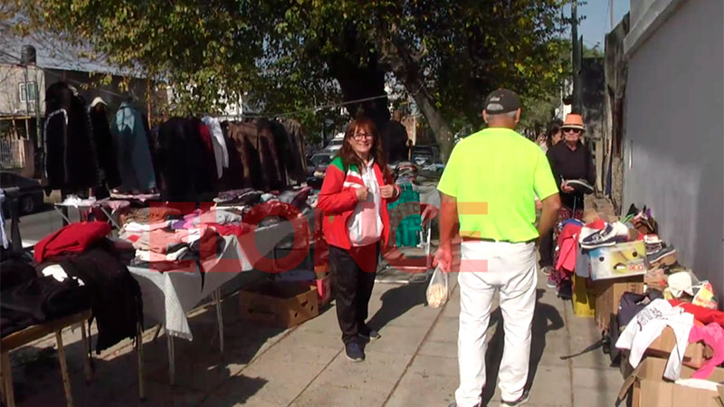 Integrantes del equipo de Newcom del Club San Agustín realizan una feria americana en la institución. Hasta las 17, se podrán adquirir prendas y calzado a precios más bajos.