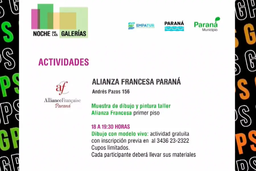 Finalmente, se anunció la realización de la tercera edición de la Noche de las Galerías para el próximo viernes. La iniciativa busca poner en valor el arte visual local. Participarán más de ocho galerías de Paraná, entre ellas La Hendija, Casa Badano, La Portland, A la vuelta de la esquina, 33 Orientales y el Círculo Médico.
