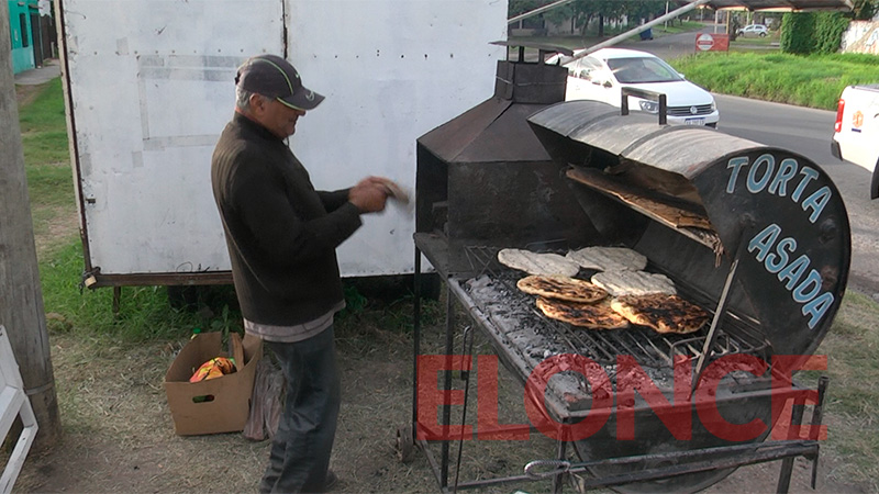 En la esquina de Provincias Unidas y Avenida Ramírez, Oscar atiende su puesto de torta asada desde hace 18 años. Con la vuelta de las bajas temperaturas, este plato se convierte en una excelente opción para acompañar los mates de la mañana o la merienda. Según comentó Oscar a Elonce, “hace una semana que volvió a hacerlas ya que en verano se venden muy poco por el calor”.