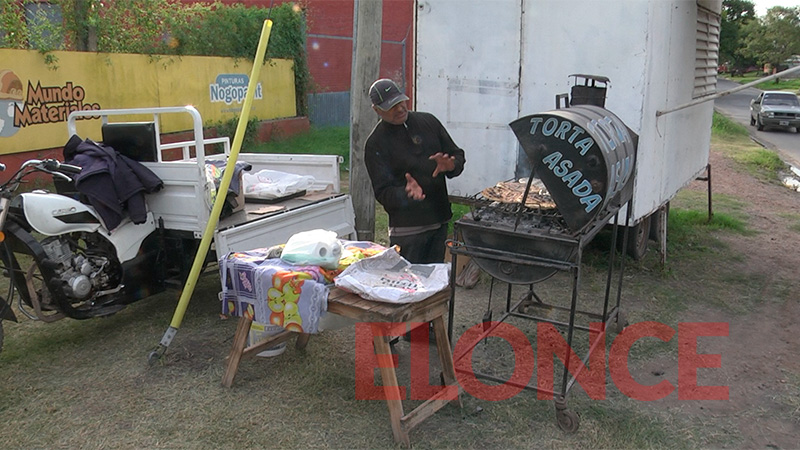 En la esquina de Provincias Unidas y Avenida Ramírez, Oscar atiende su puesto de torta asada desde hace 18 años. “Común o con chicharrón, cada torta asada tiene un valor de $300”, contó el hombre a Elonce.
