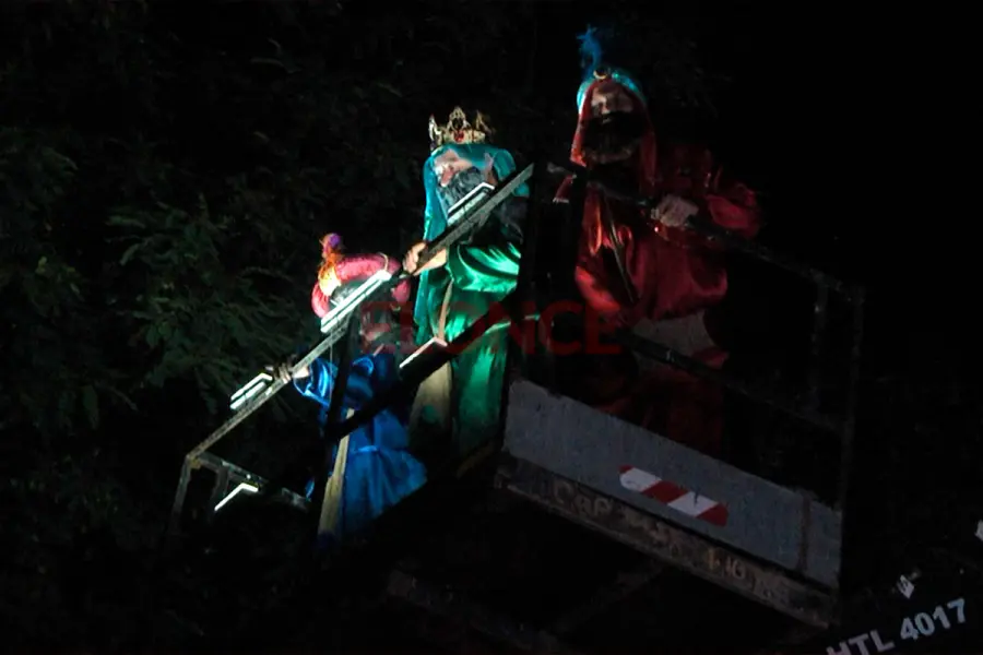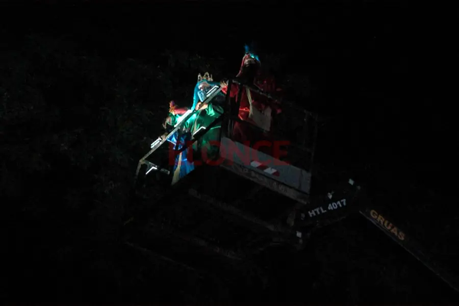 Uno de los momentos más impactantes de la edición 62 fue la llegada de los Reyes Magos desde lo alto, descendiendo desde una grúa a unos 40 metros de altura. “En esta edición realmente han estado más que creativos. Han bajado de la grúa los Reyes Magos, fue una sorpresa para los chicos”, relató Chapino.