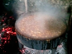 La comida fue preparada íntegramente en el barrio, utilizando grandes discos de arado para cocinar los ravioles y la salsa en simultáneo. Se sirvieron también gaseosas, pan y como postre, panqueques con dulce de leche. La organización informó que para concretar la jornada se reunieron donaciones por $420.000.