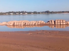 Manta protectora del túnel al descubierto. La bajante del río Paraná volvió a mostrar una imagen poco habitual pero cada vez más frecuente: la manta geotextil que protege el Túnel Subfluvial “Uranga-Sylvestre Begnis” quedó nuevamente al descubierto. El fenómeno se produjo luego de que el río descendiera a 57 centímetros en el puerto de la capital entrerriana.
