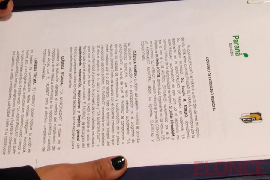 En el acto de rúbrica estuvieron presentes autoridades de la comuna y del CAE. Sobre el acuerdo, la intendenta de Paraná, Rosario Romero, explicó a Elonce que el club “nos va a ayudar a mantener la plaza, sostenerla y van a hacer el planteo de una obra. Nosotros estamos terminando la Osinalde Oeste que en un par de días la vamos a estar poniendo en valor”.