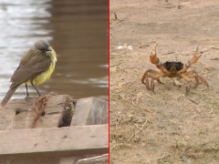 La naturaleza cautivó a los vecinos de Puerto Sánchez este lunes por la tarde, cuando una serie de postales espontáneas despertó admiración entre quienes paseaban o pescaban a la vera del río Paraná. Un cangrejo moviéndose ágilmente por la arena y un ave posada con tranquilidad en la punta de una canoa ofrecieron un espectáculo inesperado y bienvenido para quienes decidieron acercarse al tradicional barrio ribereño de Paraná.