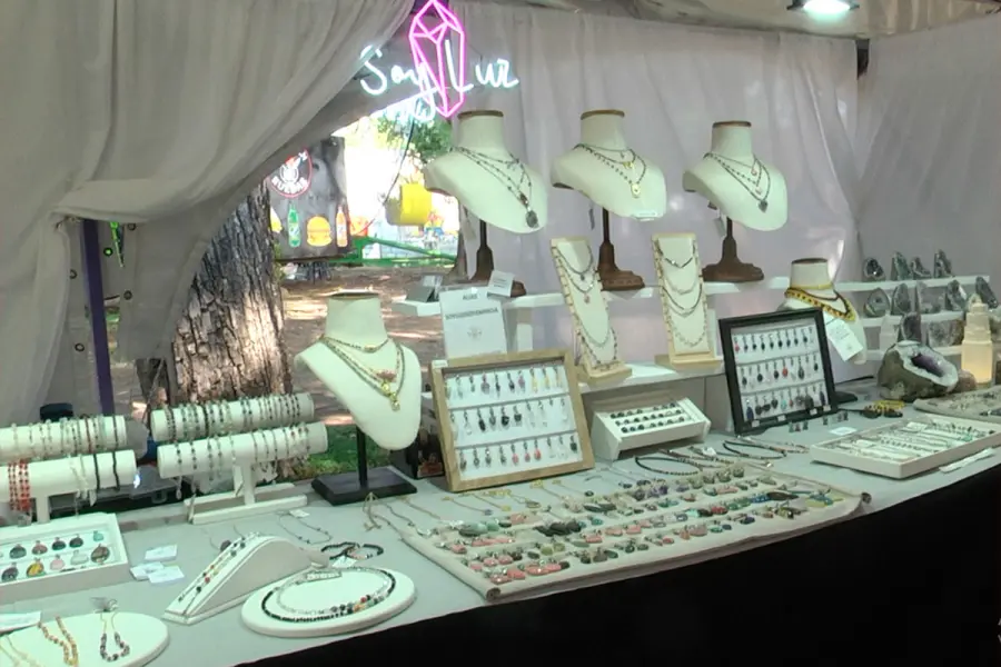 Dentro del recorrido, también se destacaron los puestos dedicados a piedras energéticas y elementos vinculados al bienestar. Una de las emprendedoras explicó que su propuesta se centró en “trabajar la energía a través de minerales como la pirita, el cuarzo rosa y la rodocrosita”, esta última reconocida como piedra nacional.