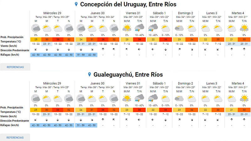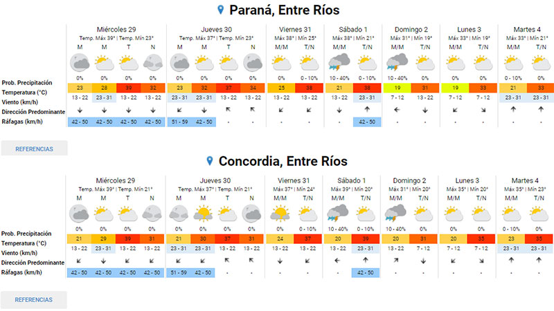 Los registros siguieron en ascenso y a las 16 de este miércoles, en la capital entrerriana, el termómetro marcaba 37 grados. Mientras que a esa hora, las ciudades entrerrianas de Victoria y Concordia, se ubicaron entre las 10 jurisdicciones con mayor temperatura del país, con 38,6 grados, según reportó el SMN