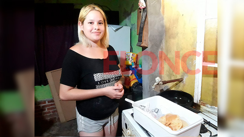 Maira vende tortas fritas en su casa, ubicada en calle Montiel al 1300 de Paraná. La lluvia ha aumentado la demanda y ella, con su bebé Nehemías de 4 meses en brazos, se dedica a prepararlas para sostener a su familia. "Es mi sustento económico y una gran ayuda", contó Maira a Elonce.