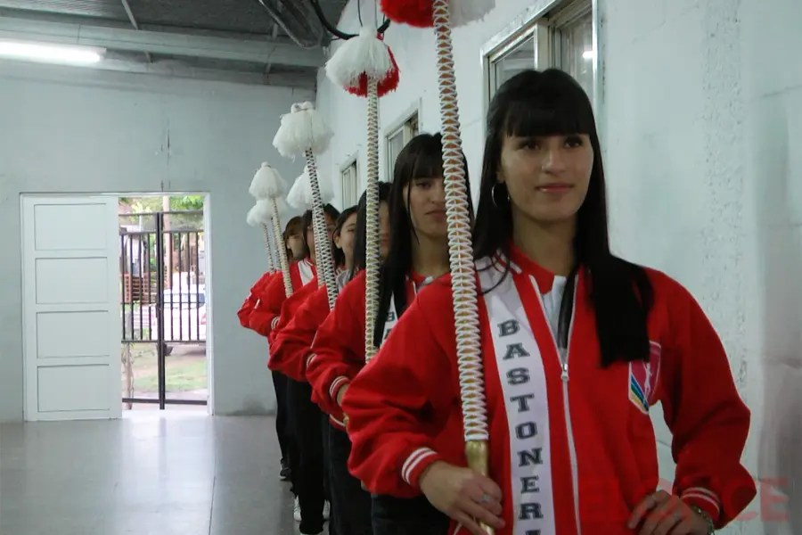 Federico, profesor del grupo, explicó que los bastones utilizados son fabricados artesanalmente. “El bastón varía de tamaño según la altura de cada chica. Lo hace un tornero, es de madera maciza de guatambú, barnizado y pintado con los detalles propios del conjunto”, indicó.