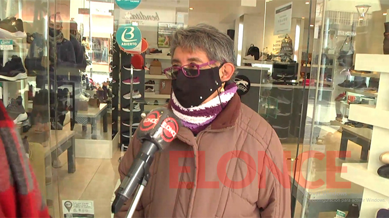 Otro joven que limpiaba el vidrio del local de insumos de estética que hoy abría sus puertas, confesó: “Se me parten las manos por el frío, pero lo tengo que hacer”.