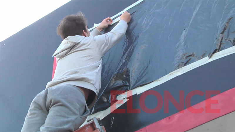 Durante la mañana. sobre calle Grella, personal municipal podaba un árbol que dificultaba la captación de imágenes de una cámara de seguridad de la Policía, mientras que personal de la entidad rojinegra trabajaba para cumplir con algunos requisitos de la CONMEBOL, como tapar todas las publicidades, entre ellas las que se encuentran en el cartel de ingreso al Club.