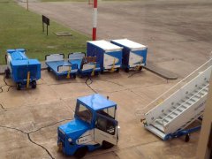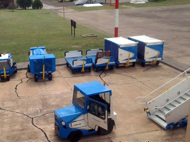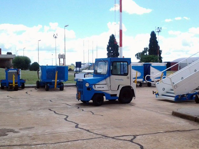 Al aeropuerto local llegaron los equipamientos que servirán a las operaciones de Aerolíneas Argentinas (escalerrillas, carritos para equipajes, APU, tractor, entre otros). Ya se plotearon los mostradores de check in de la compañía.