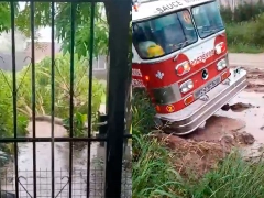 Debido a la intensa lluvia que cayó sobre Colonia Avellaneda, un equipo de bomberos quedó empantanado y no pudo salir del cuartel para asistir a emergencias. Las intensas precipitaciones anegaron calles y caminos, dificultando la circulación y generando complicaciones en distintos sectores de la localidad.