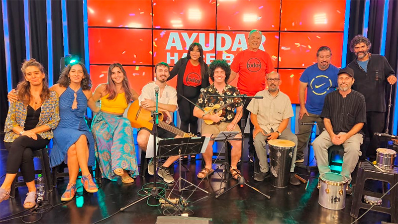 El Once por Todos llega a un número inmenso de personas que abren sus manos para solidarizarse con el otro. Pegó en el palo fue uno de los grupos presentes en uno de los estudios de Elonce, desde donde hizo bailar a los corazones solidarios al ritmo de los distintos ritmos musicales.