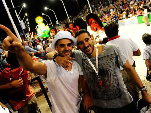 Como sorpresa, compartió el momento desde las gradas el futbolista Jonas Gutiérrez, quien llegó acompañado por un grupo de amigos para disfrutar del Carnaval y ver desfilar a su novia.