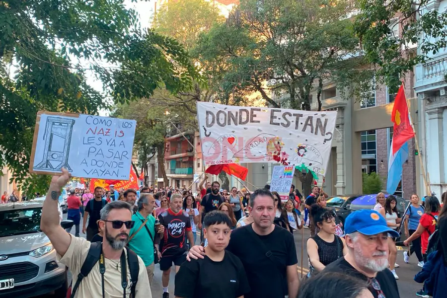 Durante la movilización, los participantes en la Marcha por la Memoria expresaron a Elonce sus consignas vinculadas a la memoria colectiva, la defensa de los derechos humanos y el rechazo al negacionismo.