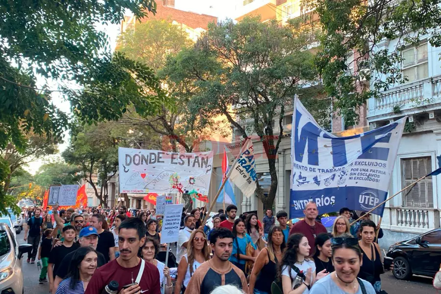 Embanderados por la Asociación de Familiares y Amigos de Desaparecidos de Entre Ríos (AFADER), la marcha partió poco después de las 17 desde la Plaza Sáenz Peña y caminó las calles de la ciudad hasta Plaza Alvear, donde se desarrollará el acto central de la jornada y se dará lectura al documento único elaborado por la Multisectorial por los Derechos Humanos.