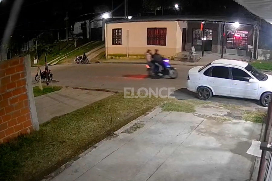 Jóvenes sufrieron caída tras intento de dañar una moto en Paraná. Dos jóvenes protagonizaron un incidente en barrio Gaucho Rivero, en la ciudad de Paraná, tras intentar dañar una moto estacionada. El hecho ocurrió este jueves por la noche en calle Luis Palma, y quedó registrado por una cámara de seguridad domiciliaria a la que accedió Elonce.