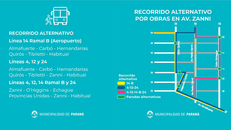 Recorrido: Zanni – O’Higgins – Echagüe – Provincias Unidas – Zanni – Habitual.