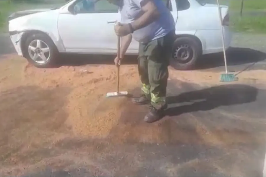 En otro episodio, un vehículo volcó en Circunvalación José Hernández, en la bajada hacia Blas Parera, tras chocar el guardarrail. "Recibimos un llamado del 911. Llegamos al lugar y constatamos que un vehículo había chocado el guardarrail, había volteado una palmera y quedó en la bajada", relató. Además, en el lugar se detectó una pérdida de aceite, lo que obligó a los agentes a limpiar la calzada y tirar aserrín.