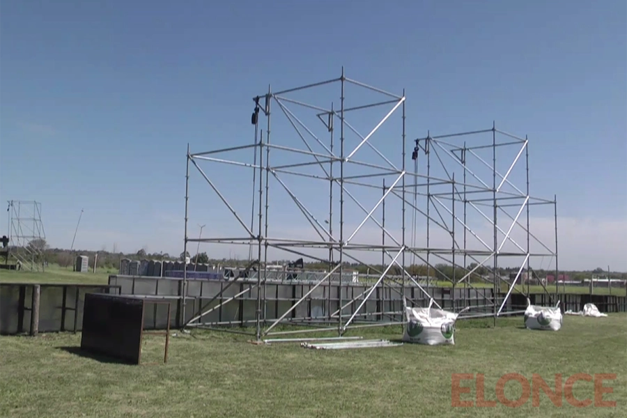 La organización de la Peña del Estudiante en Oro Verde avanzó a paso firme este viernes. Desde el lugar, los organizadores confirmaron que el montaje del escenario ya está en marcha, aunque algunos elementos, como el sonido, se instalarán recién mañana debido a las condiciones climáticas.