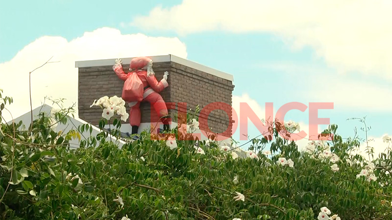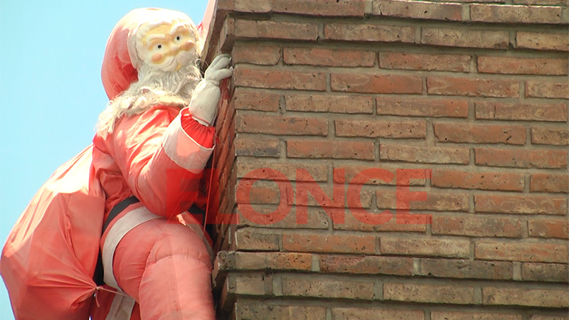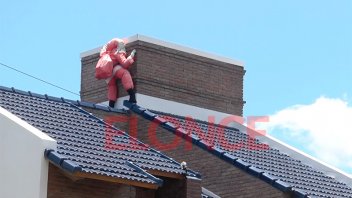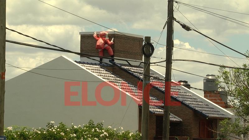 El espíritu navideño se vive en la ciudad de Paraná. Quienes pasan por calles Brown y Soler se sorprenden porque está Papá Noel subiendo por la chimenea de una casa.
