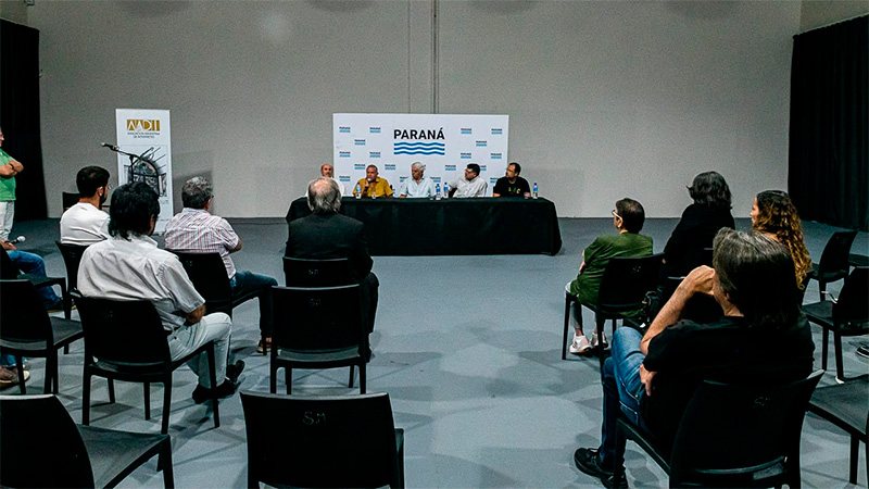 El público disfrutó la charla abierta “La chamarrita entrerriana”, que tuvo como moderador a Manuel Lazo y la participación de Rubén Cuestas (Los Hermanos Cuestas), Víctor Acosta (autor del libro “La chamarrita entrerriana”), Hernán Rondan Grasso (presidente de la Comisión Permanente de Homenaje a Linares Cardozo) y Alejandro Acosta (Las Voces de Montiel).
