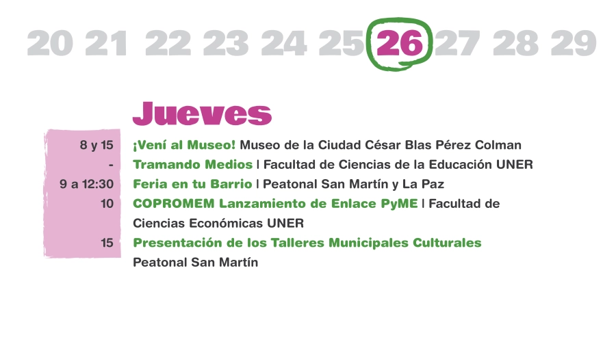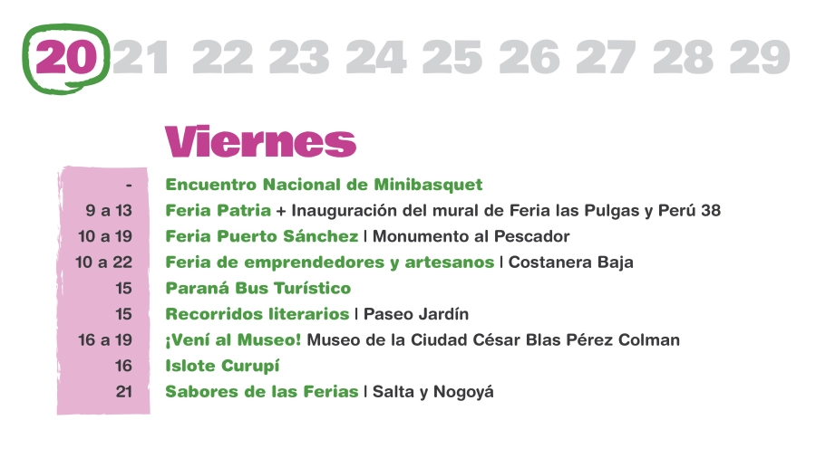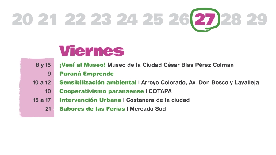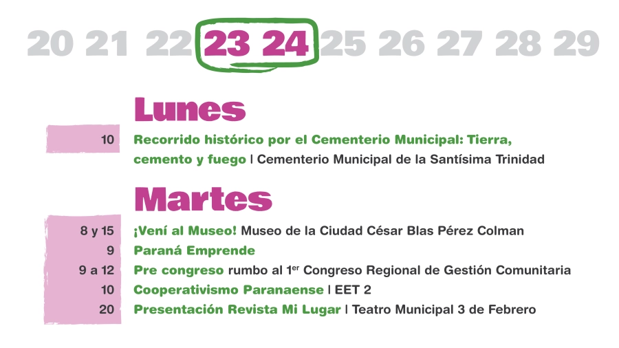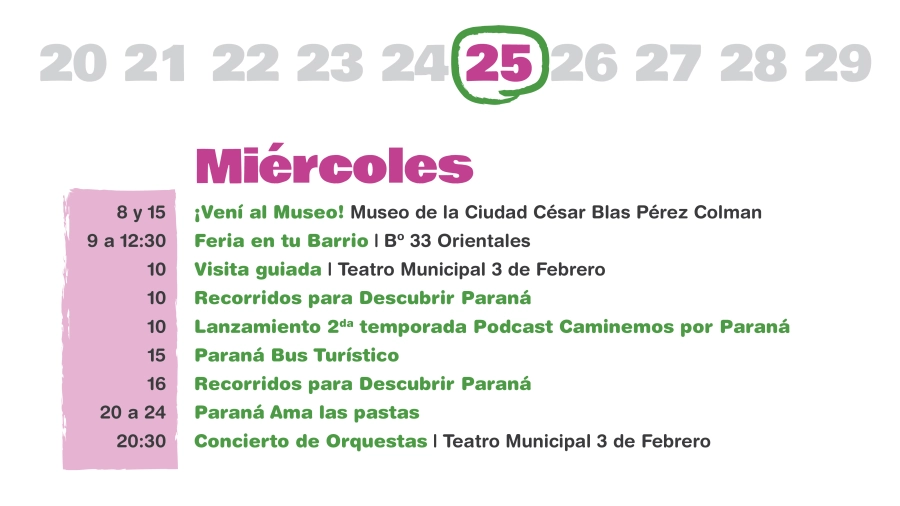 “La idea es tener una agenda que dé a conocer la historia de la ciudad, que destaque sus espacios históricos, museos, teatros, y que también se ponga en valor el presente del presente de nuestra Paraná y de la gran cantidad de cosas que se pueden disfrutar, tanto para paranaenses como para turistas”, agregó Halle.