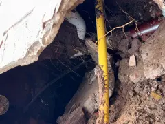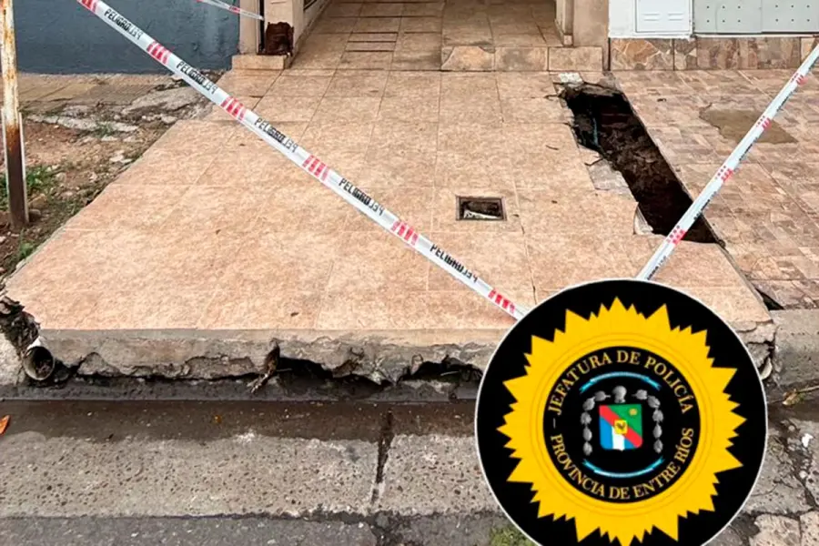 El hecho fue constatado en el marco de los operativos de seguridad y prevención que se desarrollan en la zona. Según se informó, la filtración generó el socavamiento del terreno, provocando el hundimiento del suelo y el desprendimiento del contrapiso de la vereda.