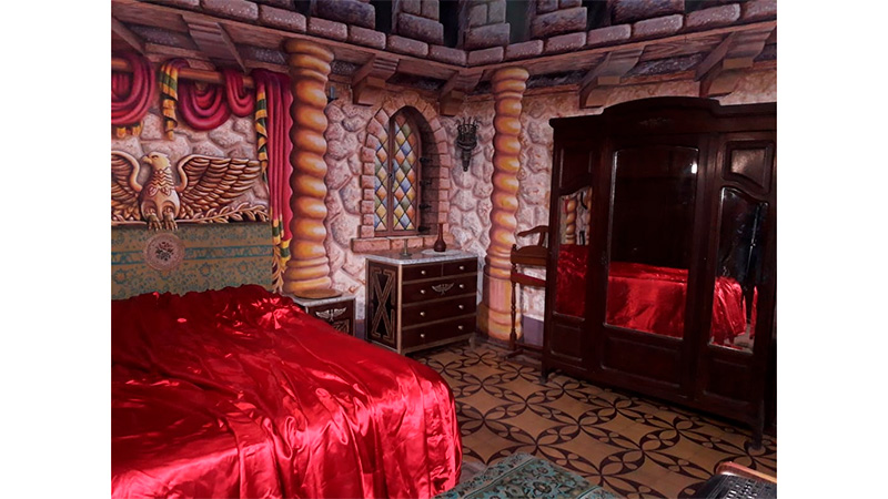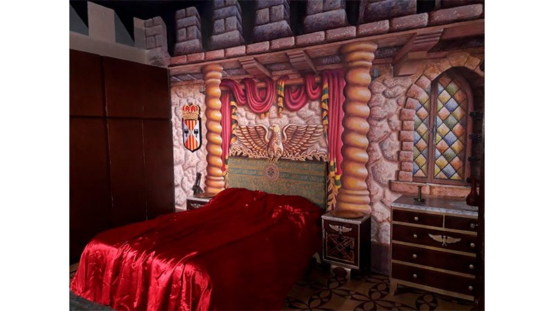 El artista plástico Mario Viola, pintó en su habitación un castillo medieval.