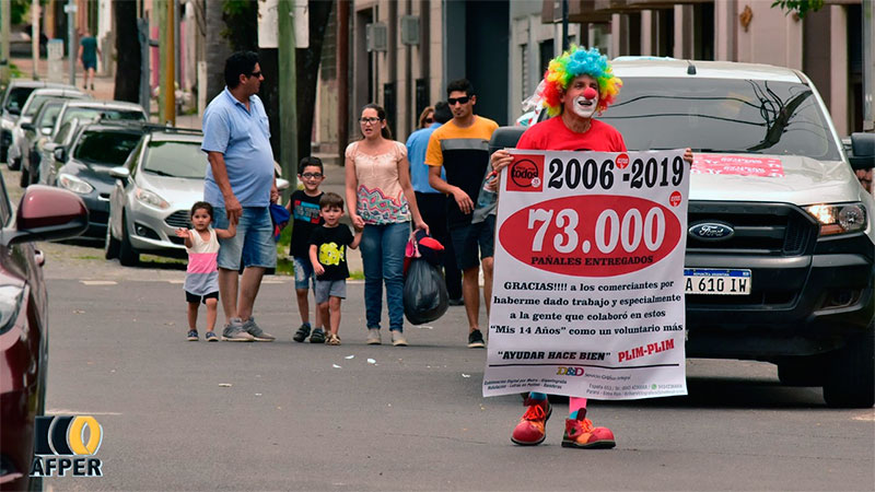 Desde hace 14 años, Plim Plim es un símbolo de la solidaridad y con su loable tarea y aporte a Once por Todos, este año llegó a los 73.000 pañales donados. Destacó la confianza de la gente y agradeció a todos por las metas logradas.