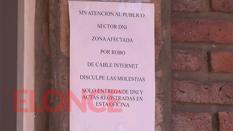 Al respecto, una vecina del lugar, Jesica, en declaraciones a Elonce, detalló que “el 4 de mayo pedí el día en el trabajo para realizar los trámites del DNI para mis hijos y cuando llegue al registro, me enteré que estaban sin sistema porque no cuentan con internet por el robo de cables”.