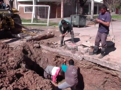 Las tareas responden a una falla detectada en una junta reparada el pasado viernes, que no logró un sellado adecuado debido al desnivel de los tramos de cañería. Para esta ocasión, se incorporó un caño de PVC flexible que permitirá la unión definitiva entre ambos tramos.
