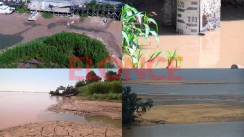 <i>Elonce TV,</i> con sus cámaras aéreas, mostró la histórica bajante que deja al descubierto los <b>hilos de agua</b> de la altura del puerto, <b>tierra seca y embarcaciones encalladas</b>, además de los <b>bancos de arena</b> que emergen frente a la costa de la capital entrerriana.