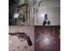 Durante el operativo, efectivos de la comisaría novena, con apoyo de personal de la Jefatura Departamental, incautaron dos pistolas calibre 11.25, tres revólveres calibre .32, una pistola tipo revólver calibre 7.5 mm suizo, además de cuatro armas largas desarmadas, cartuchería variada, un proyectil de cañón y elementos vinculados a equipamiento táctico (un equipo HT y una funda porta placas para chalecos balísticos). Parte del armamento fue hallado en condiciones que requerirán pericias para determinar su funcionamiento.