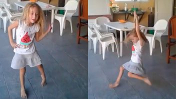 En la filmación se puede ver a la pequeña agarrada de una soga que pende del techo y bailar a todo ritmo, mientras sus gestos denotan la felicidad por ese momento.