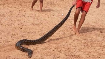 Una víbora se acercó nadando rápidamente por el río Paraná hacia la playa El Saucedal, de Piedras Blancas, y asustó a todos los allí presentes. Se trata de una gran Curiyú que salió del agua y quedó en la costa, cerca de las sombrillas hasta que un guardavidas la retiró del lugar.