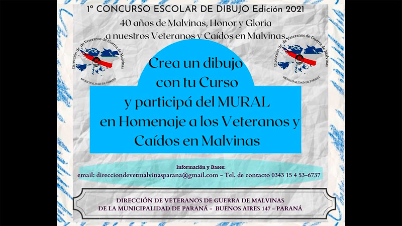 En el 2022 se cumplen 40 años de la guerra de Malvinas. En ese marco, la Municipalidad de Paraná a través de la Dirección de Veteranos de Guerra de Malvinas, realizará el primer concurso escolar de Dibujos.